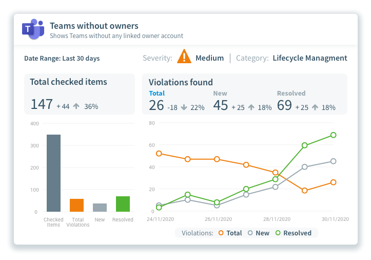 - Setzen Sie eine automatisierte Policy Engine ein, um Verstöße zu erkennen (z. B. Teams ohne Besitzer oder mit unbefugtem Gastzugang).