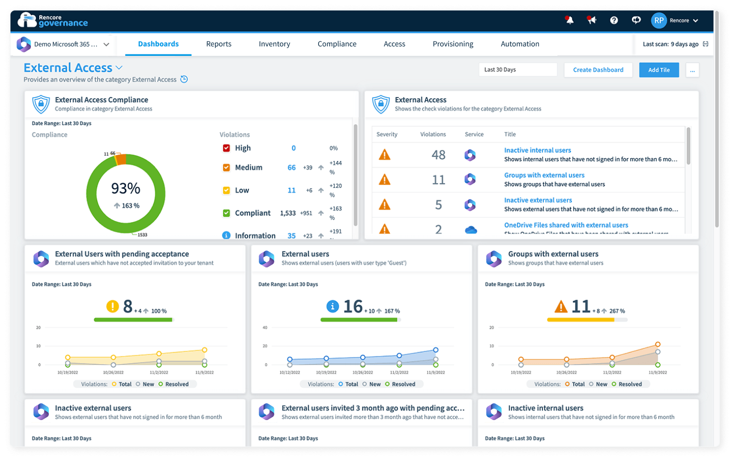 - 360°-Transparenz in Ihrem gesamten Tenant mit Echtzeit-Dashboards für Compliance, Nutzung und Risiko.